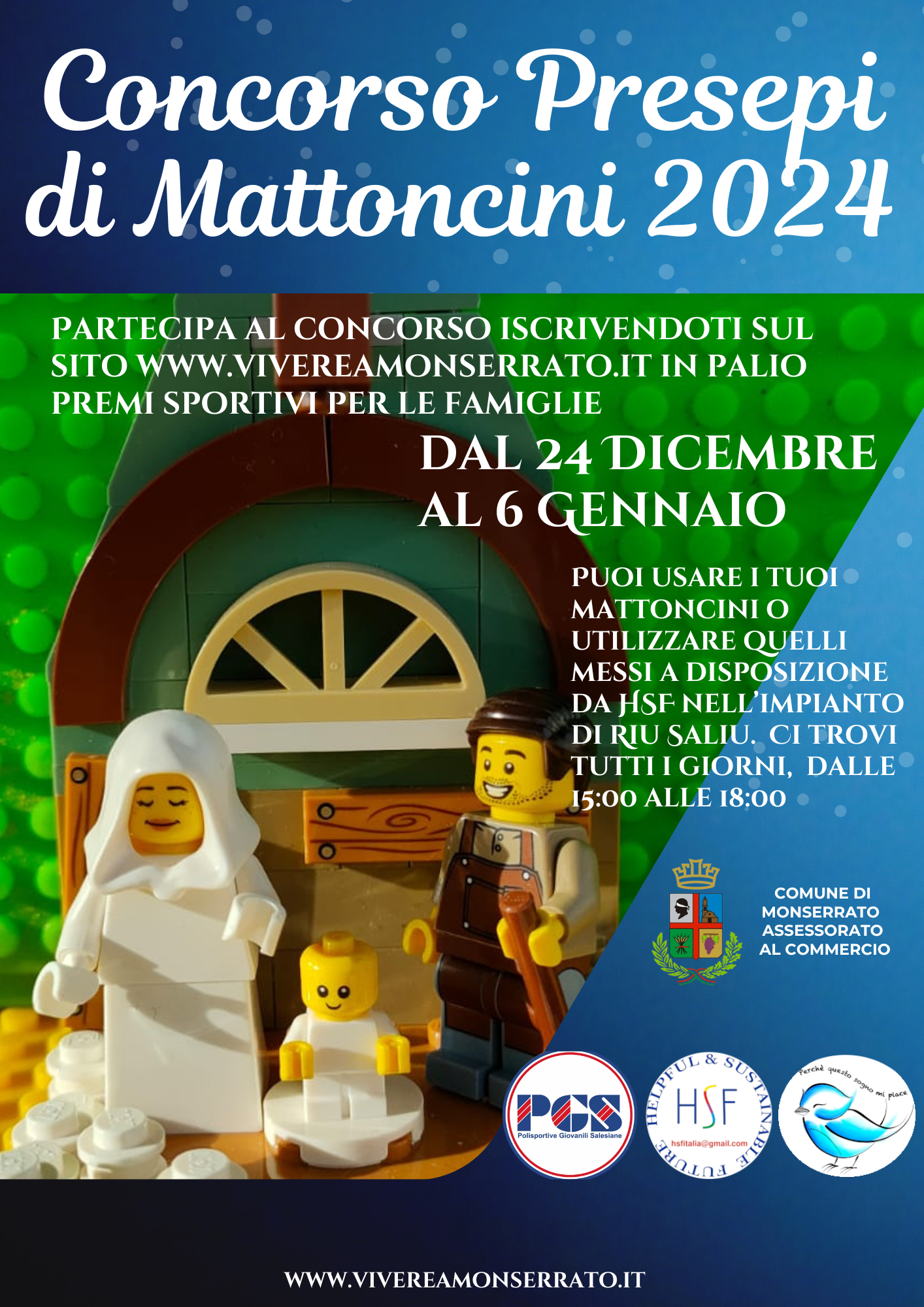 Si sono conclusi entrambi i concorsi attivati per gli eventi di Natale 2024. La classifica del concorso “Vetrine di Natale 2024” è consultabile a questo link, mentre per i presepi di mattoncini l’elenco dei vincitori verrà comunicato direttamente nella giornata delle premiazioni, che si svolgeranno il 21 Gennaio 2025 alle Leggi tutto
